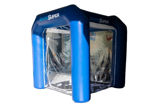 A produção da Tenda Inflável é realizado em formatos padronizados ou customizados com impressão digital total ou aplicação de imagens e logomarcas fixas ou removíveis, permite a inclusão de balcão, iluminação e cortinas, proporcionando praticidade na montagem e facilidade no transporte.